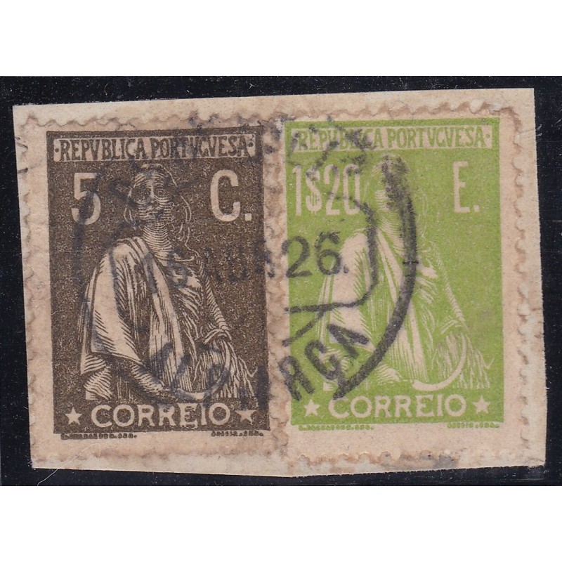 Alpiarça - Fragmento com selos nºs 250 e 252. Exemplar em boas condições.