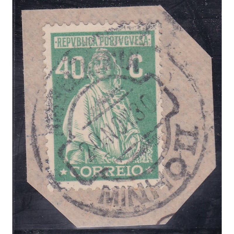 Sanfins - Fragmento com selos nºs 215, 252 e 255 com carimbo de chegada de Anadia. Exemplar em boas condições.