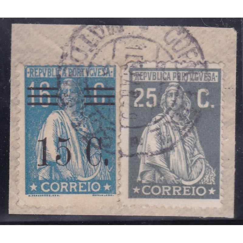 Leiria - Fragmento com carimbo de Leiria com selos nºs 221 e 241. Exemplar em boas condições.