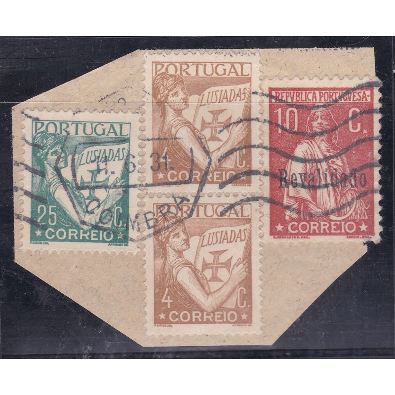 Coimbra - Fragmento com selos nºs 488, 513 e 519. Exemplar em boas condições.