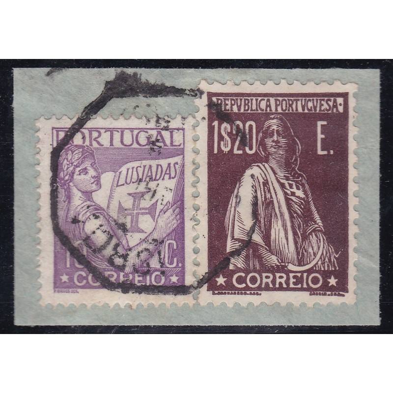 Lisboa - Fragmento com selos nºs 401 e 408. Exemplar em boas condições.