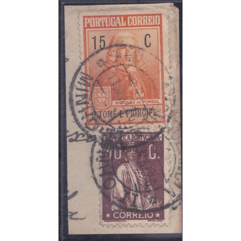 Ambulância Minho - Fragmento com selos nº 283 e selo adicional do Marques de Pombal de S. Tomé e Príncipe. Exemplar em boas condições.