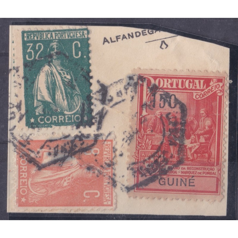 Porto? - Fragmento com selos nº 278, 281 e selo adicional do Marques de Pombal de Guiné. Exemplar em boas condições.