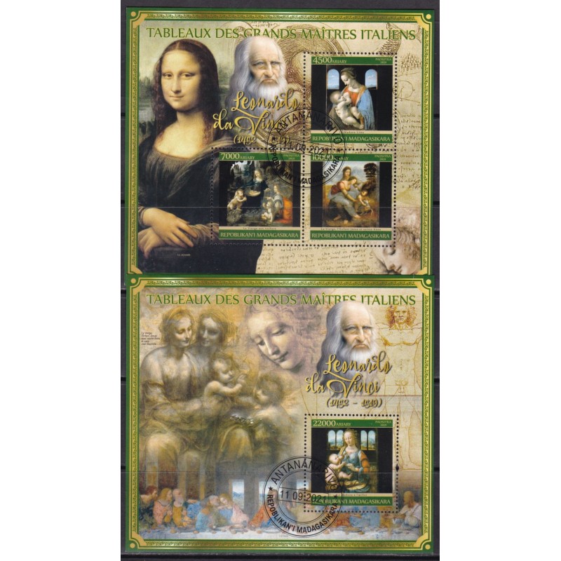 Grandes Mestres Italianos - Folha e bloco usados. Exemplar em boas condições.