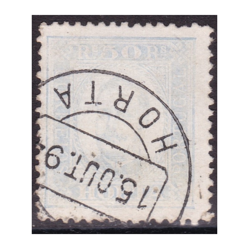 Selo nº 30 com charneira. Exemplar com falta de um dente.