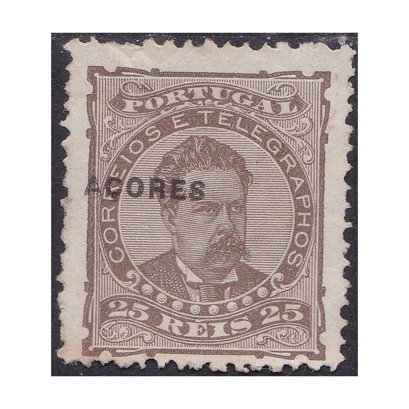 Selo Nº 19 sobrecarga Açores muito deslocada. Exemplar com denteado irregular.