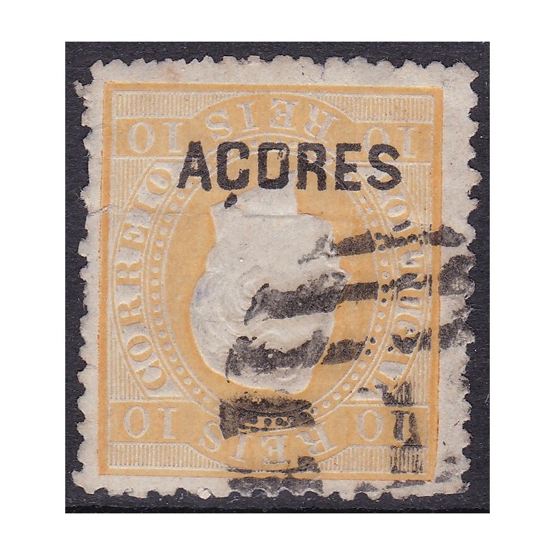 Selo Nº 19 sobrecarga Açores muito invertida. Exemplar com denteado irregular.