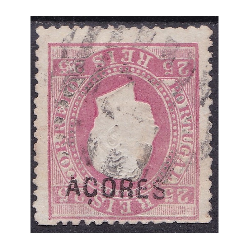 Selo Nº 19 sobrecarga Açores muito invertida. Exemplar com denteado irregular.