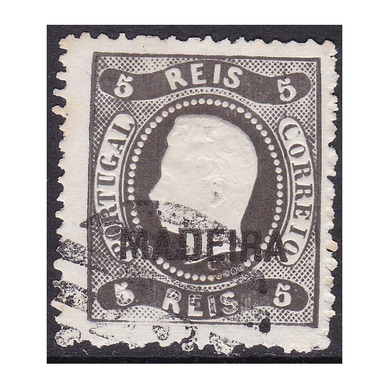 Selo Nº 50 sobrecarga Açores descentrada. Exemplar com denteado defeituoso.