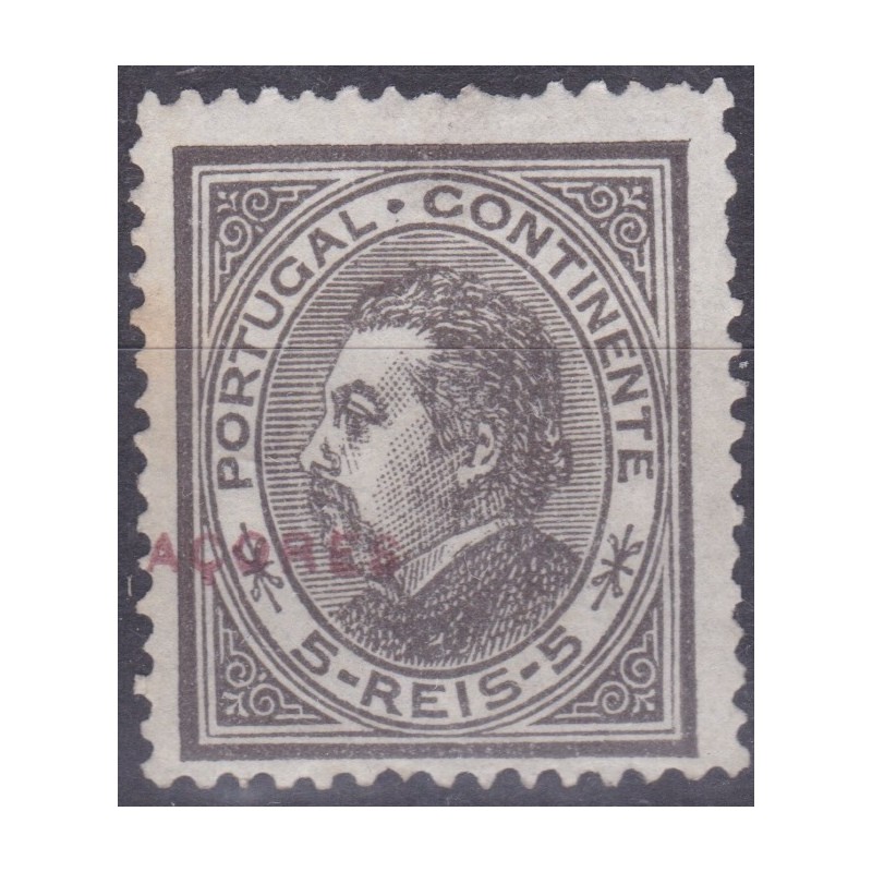 Selo Nº 18 sobrecarga Açores muito deslocada. Exemplar com denteado irregular.