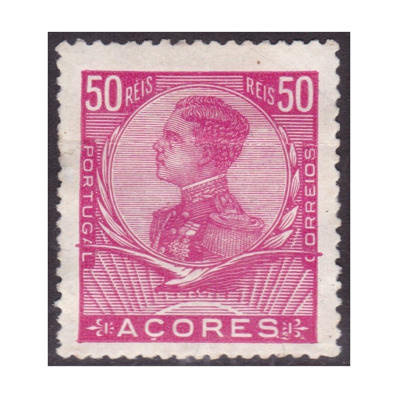 Selo Nº 46 sobrecarga Açores muito danificada. Exemplar em boas condições.