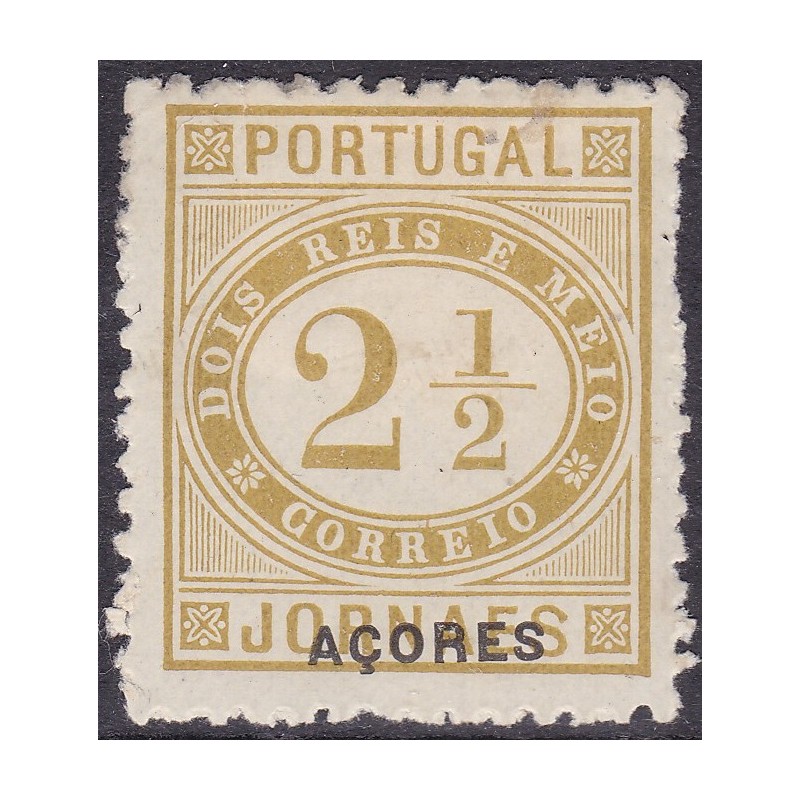 Selo Nº 19 sobrecarga Açores muito deslocada. Exemplar com denteado irregular.