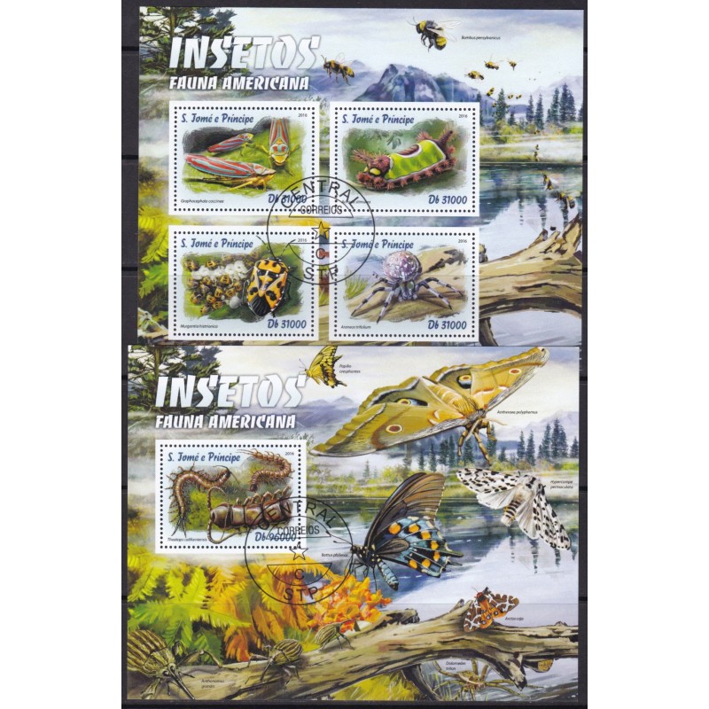 Insectos - Folha e bloco usados. Exemplar em boas condições