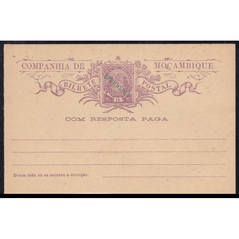 Inteiro Postal nº 32 de 10 réis verde escuro, " Resposta Paga". Cartolina camurça.