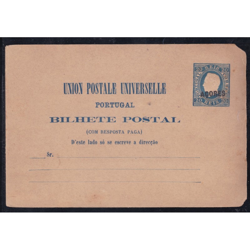Inteiro Postal nº 21B (1 de Abril) com sobrecarga Açores, "Torre de Santa Maria de Belem" Castanho Violeta