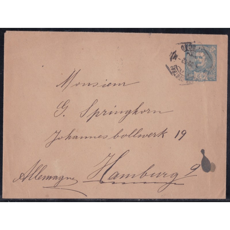 Sobrescritos Inteiro nº 6. Circulado de Lisboa para Hamburg Alemanha.