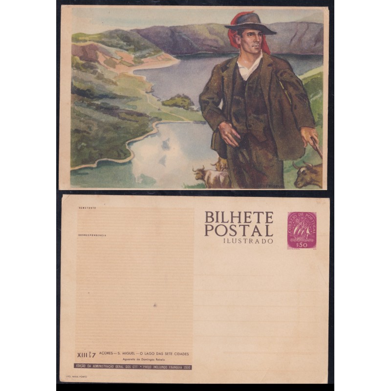 Inteiro Postal não circulado nº XIII C7 - Açores - S. Miguel, Serie G. Aguarela de Domingos Rebelo. Exemplar em boas condições