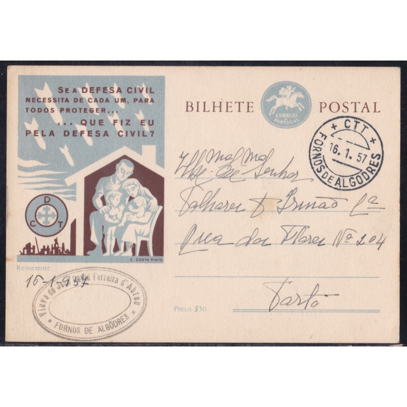 Cartão Inteiro Postal nº3D - "Beira Alfandega" (cartolina azul). Dobra de folha e perfuração B.