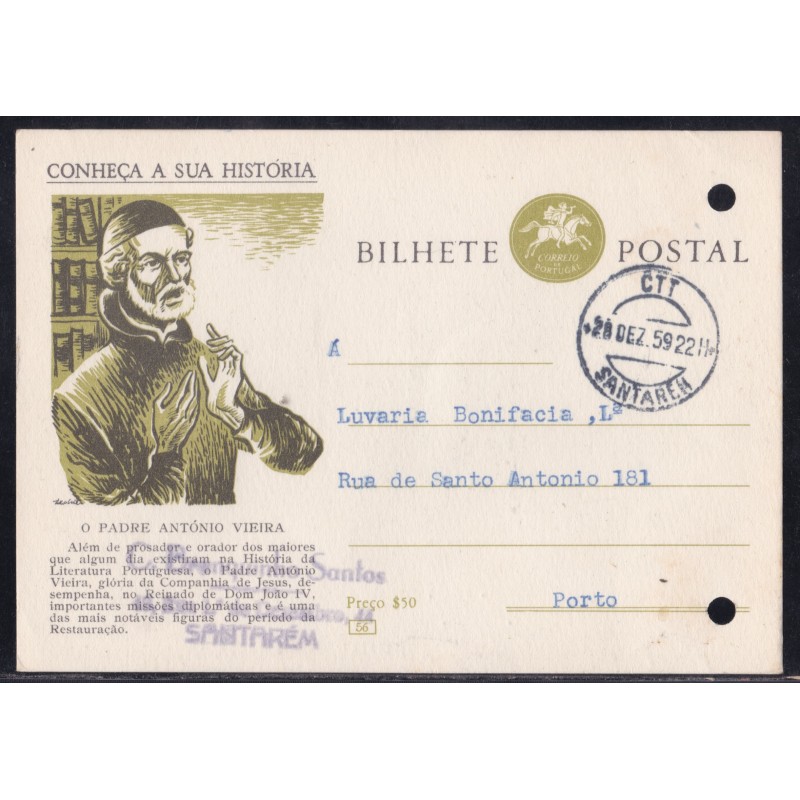 Inteiro Postal nº 139 - 56. Circulado de Santarém para o Porto.