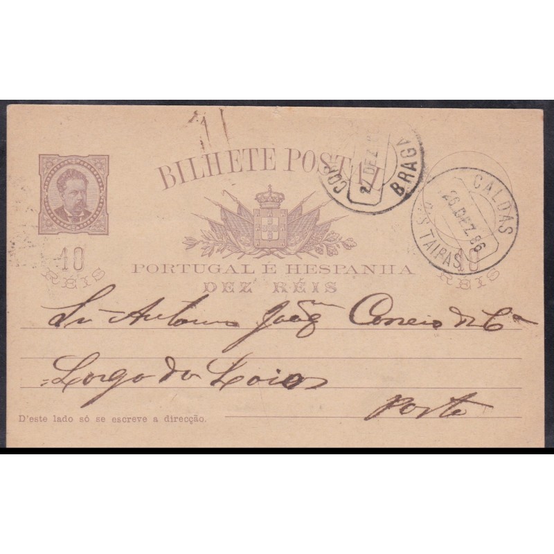 Inteiros Postais nº 9 - Circulado de Caldas das Taipas para o Porto em 26 de Dezembro de 1886.