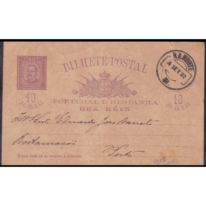 Inteiros Postais nº 13 - Circulado a 4 de Setembro de 1892 de R.A.Norte para Porto.