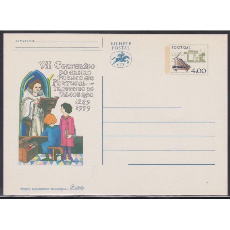 VII Centenário do Ensino Público em Portugal Mosteiro de Alcobaça com selo nº 1162. Exemplar em boas condições.
