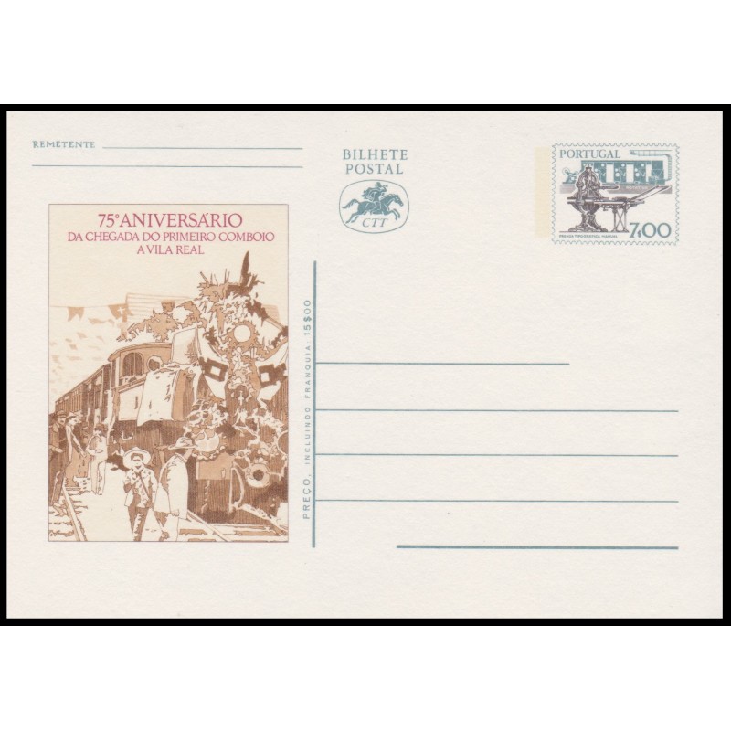 75º Aniversário do Primeiro Comboio A Vila Real com selo nº 1167. Exemplar em boas condições.
