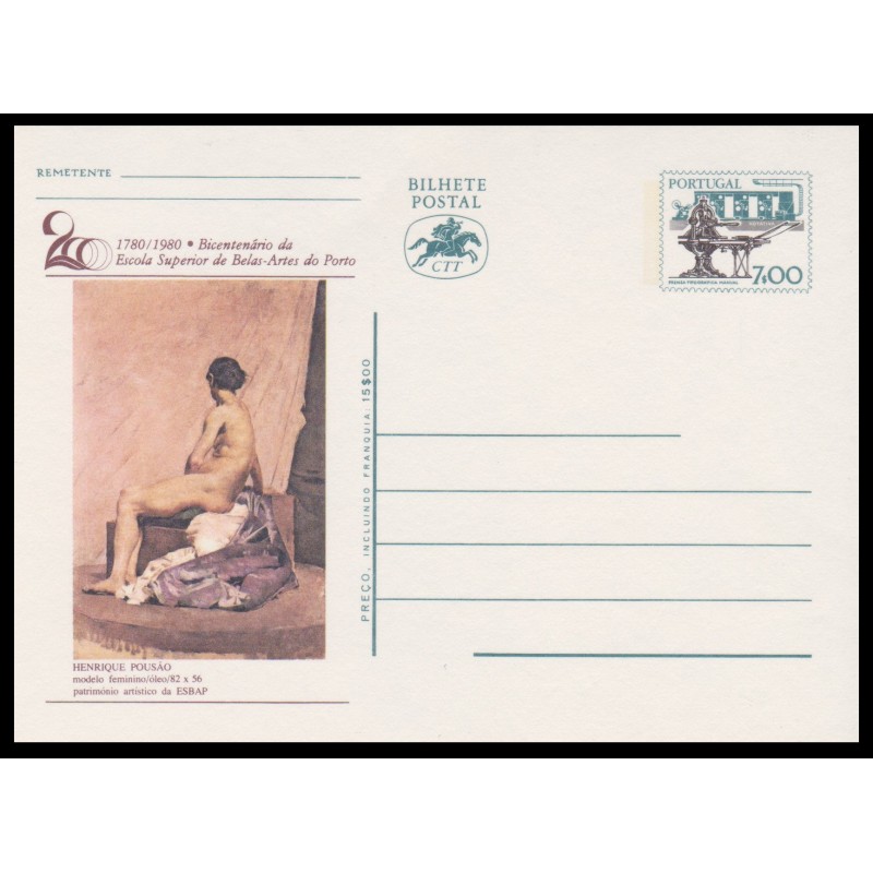 Bicentenário da Escola Superior de Belas artes do Porto com selo nº 1167. Exemplar em boas condições.