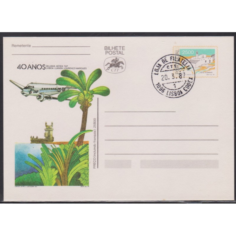 40 Anos da Linha Aérea TAP de Lisboa - Luanda - Lourenço Marques com selo nº 1716. Exemplar em boas condições.
