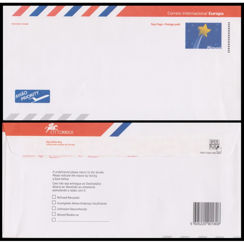 Sobrescrito Inteiro - Correio Internacional Europa com Taxa Paga. Exemplar em boas condições.