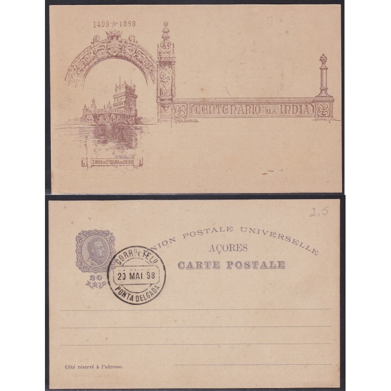 Inteiro Postal nº 21 (1 de Abril) com sobrecarga Açores, "Torre de Santa Maria de Belem" Castanho Violeta