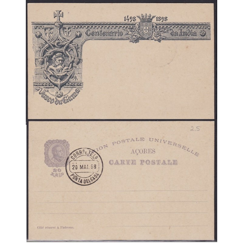 Inteiro Postal nº 21 (1 de Abril) com sobrecarga Açores, "Vasco da Gama" azul cinzento escuro