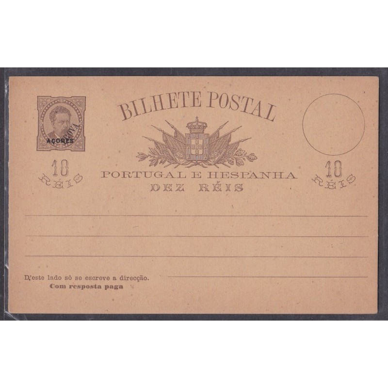 Inteiro Postal nº 21B (1 de Abril) com sobrecarga Açores, "Torre de Santa Maria de Belem" Castanho Violeta