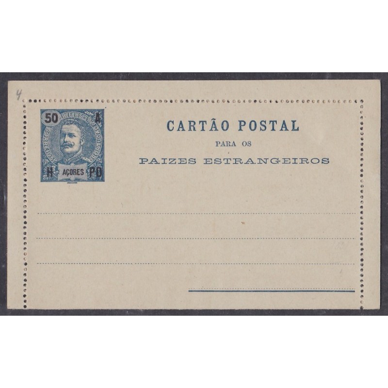 Cartão Inteiro Postal nº4, de 50 réis azul (cartolina azul clara).