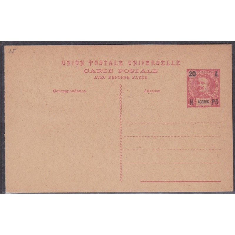 Inteiro Postal nº 21 (1 de Abril) com sobrecarga Açores, "Vasco da Gama" azul cinzento escuro