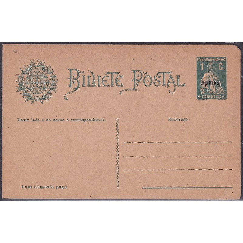 Inteiro Postal nº 21 (1 de Abril) com sobrecarga Açores, "Vasco da Gama" azul cinzento escuro