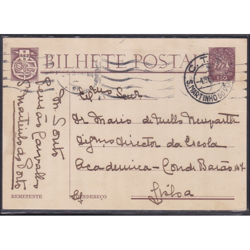 Inteiros Postais nº 98 - Emblema dos C.T.T. à esquerda. Circulado de S. Martinho do Porto para Lisboa.