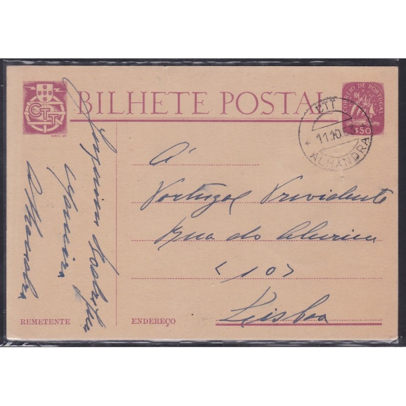 Inteiros Postais nº 116 - Emblema dos C.T.T. à esquerda. Circulado de Alhandra para Lisboa.