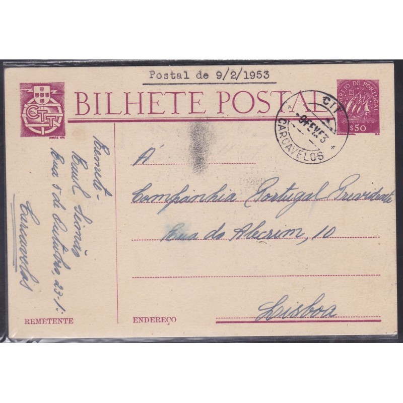 Inteiros Postais nº 116 - Emblema dos C.T.T. à esquerda. Circulado de Carcavelos para Lisboa.