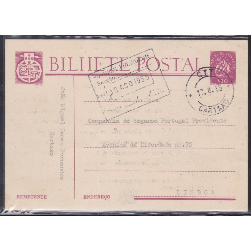 Inteiros Postais nº 116 - Emblema dos C.T.T. à esquerda. Circulado do Cartaxo para Lisboa.