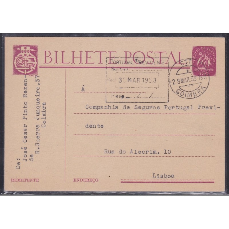 Inteiros Postais nº 116 - Emblema dos C.T.T. à esquerda. Circulado de Coimbra para Lisboa.