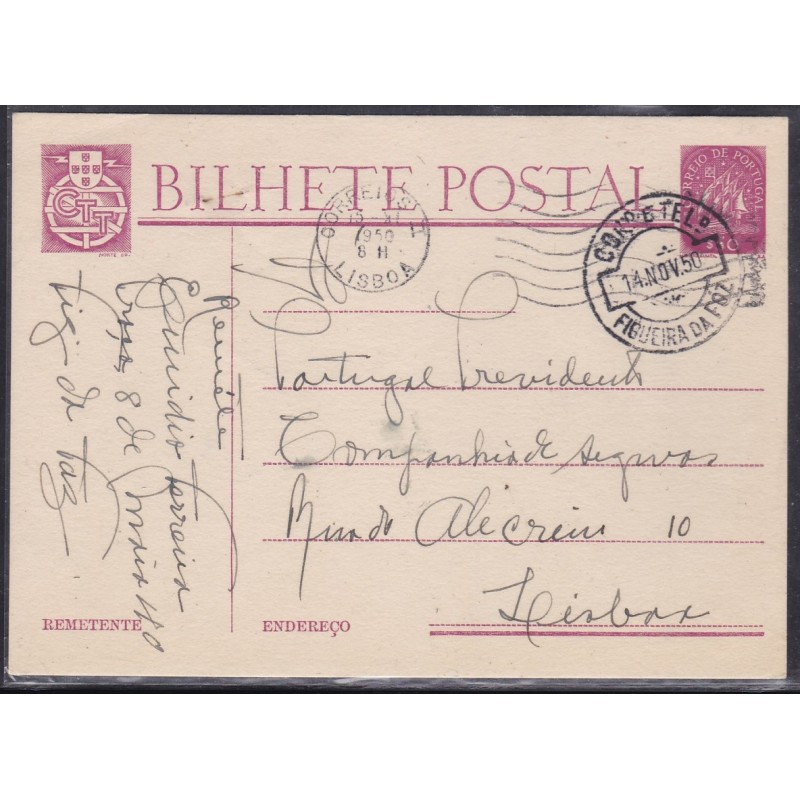 Inteiros Postais nº 116 - Emblema dos C.T.T. à esquerda. Circulado da Figueira da Foz para Lisboa.