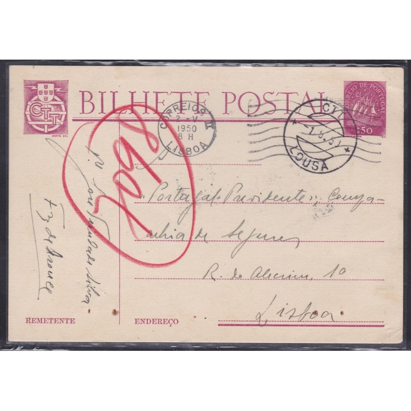Inteiros Postais nº 116 - Emblema dos C.T.T. à esquerda. Circulado de Lousã para Lisboa.