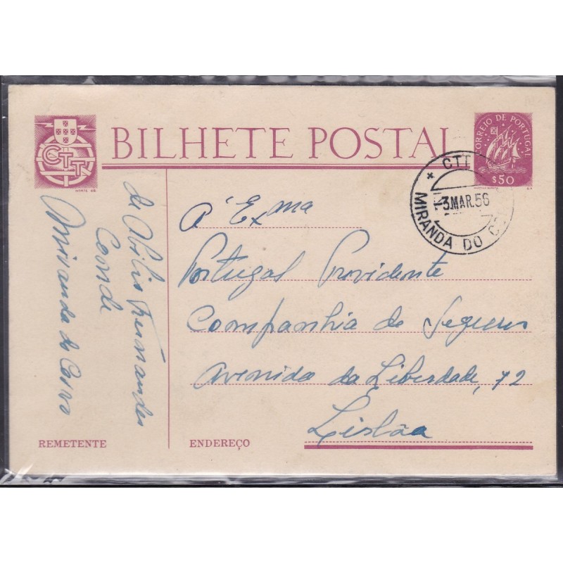 Inteiros Postais nº 116 - Emblema dos C.T.T. à esquerda. Circulado de Miranda do Corvo para Lisboa.