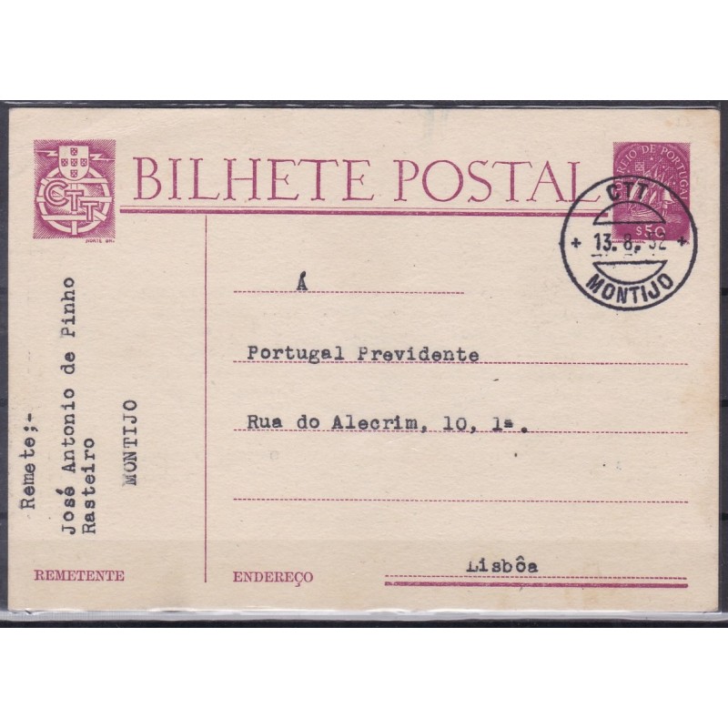 Inteiros Postais nº 116 - Emblema dos C.T.T. à esquerda. Circulado do Montijo para Lisboa.