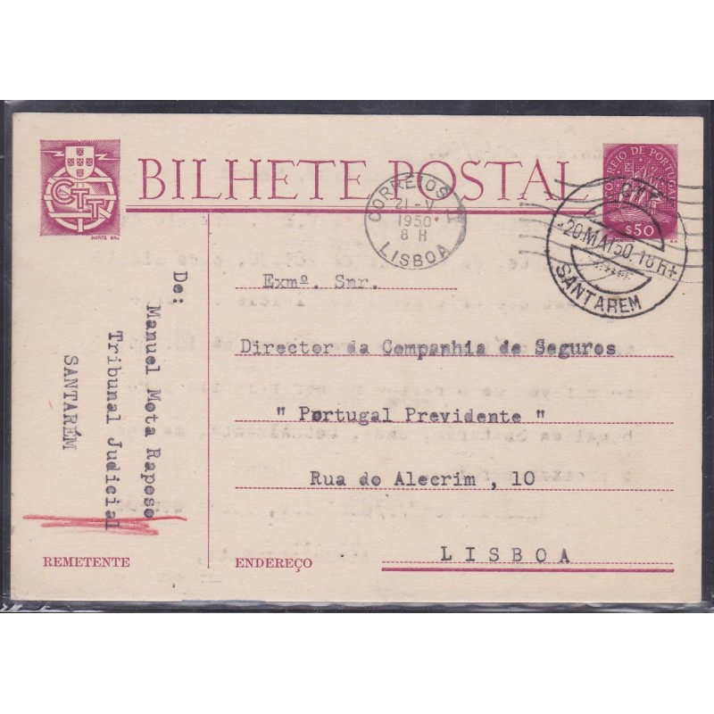 Inteiros Postais nº 116 - Emblema dos C.T.T. à esquerda. Circulado de Santarém para Lisboa.