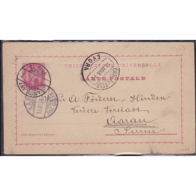 Inteiros Postais nº 10 - Circulado de Évora para a Suiça