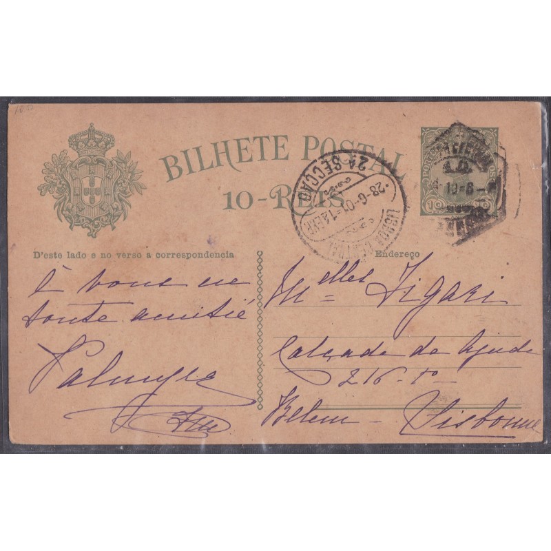 Inteiros Postais nº 48A cartolina creme amarelada - Circulado Hamburgo para Lisboa