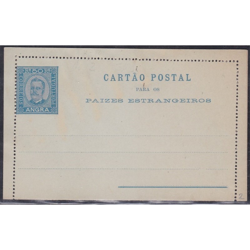 Cartão Inteiro Postal nº2, 50 reís azul (cartolina azul clara).
