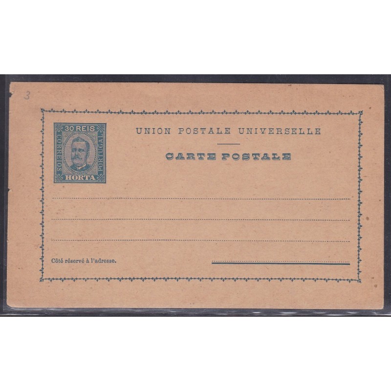 Cartão Inteiro Postal nº4, 50 reís azul (cartolina azul clara). Dobra de folha e perfuração A.